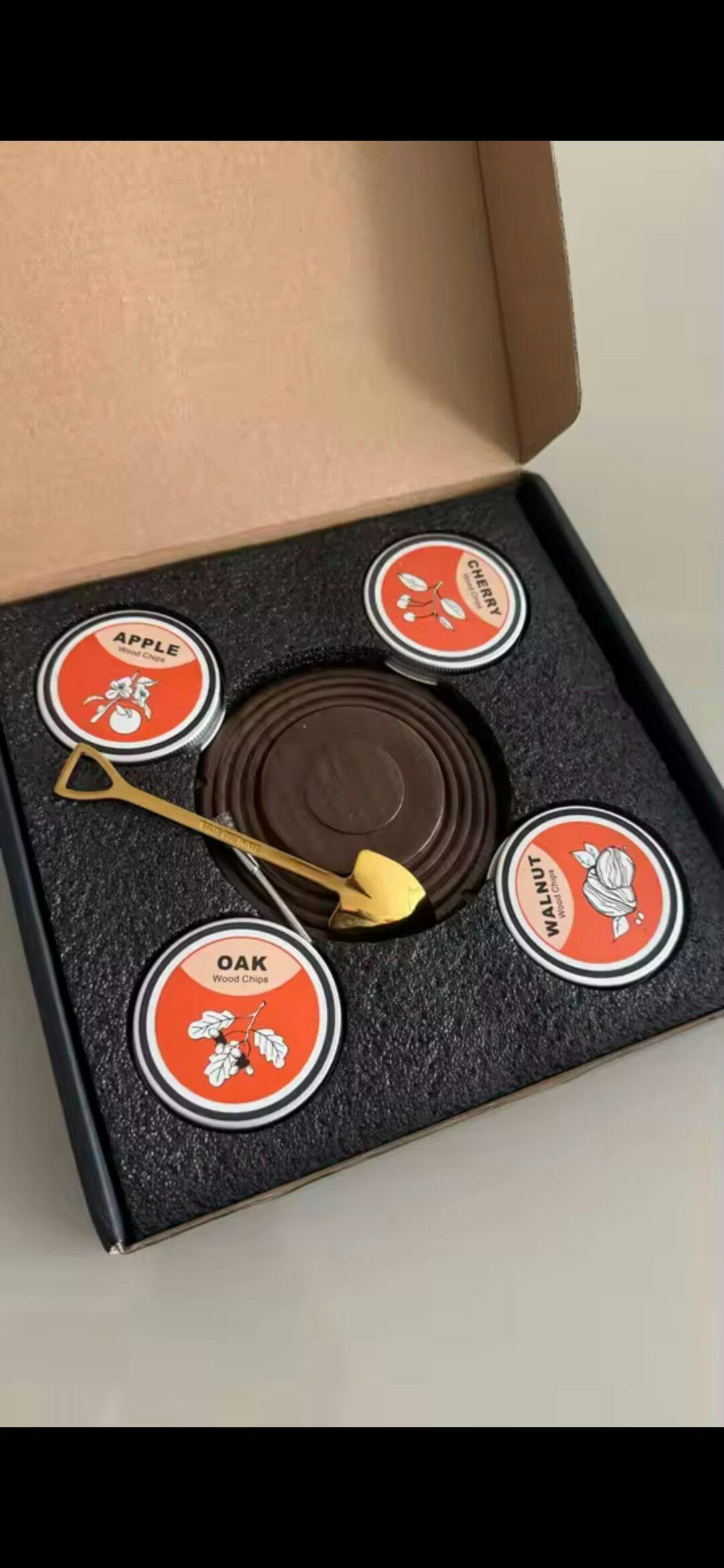 ⭐ Complete Gift-Ready Set – Includes smoker top, wood chip tins, cleaning brush, scoop and luxury box.